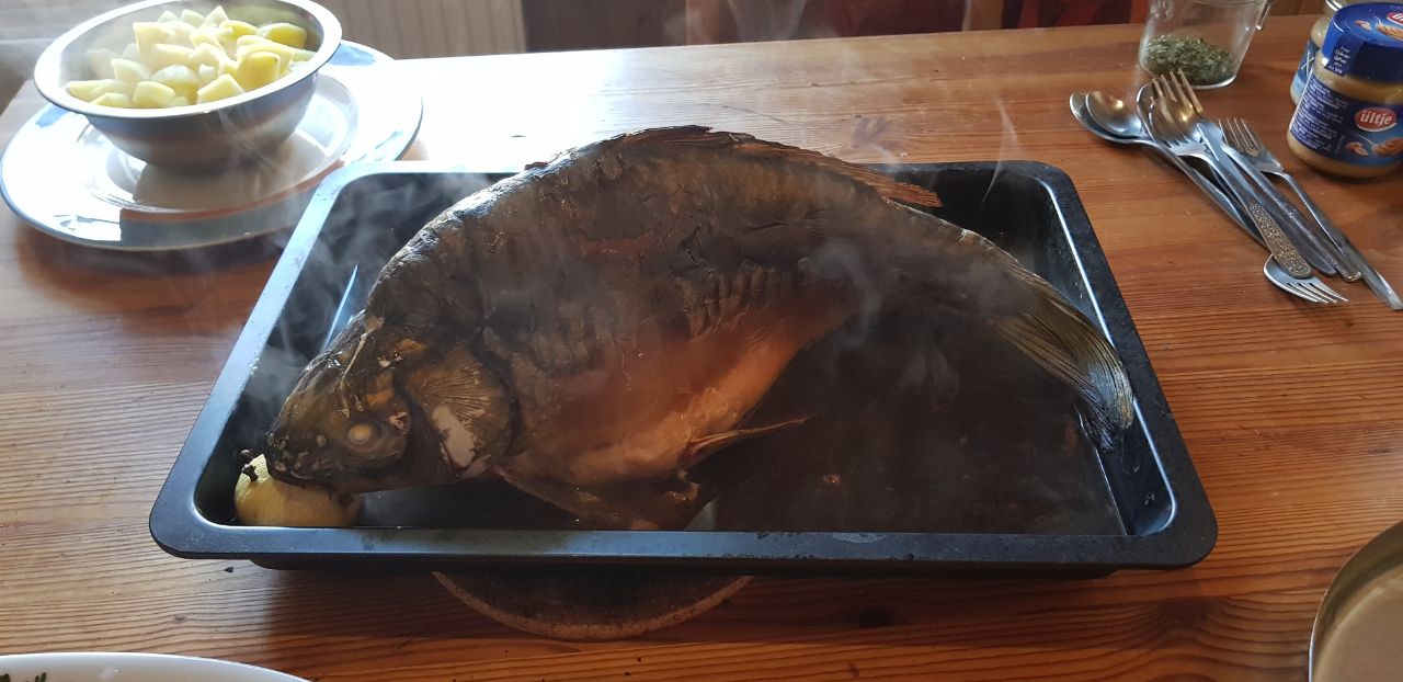 - Karpfen blau - am Wurzelgemüse und Salzkartoffeln